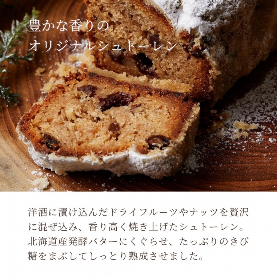 いちじくをベースに、たっぷりのドライフルーツやナッツが入った生地を発酵バターにくぐらせ、芳醇で滋味深いシュトーレンに仕上げました