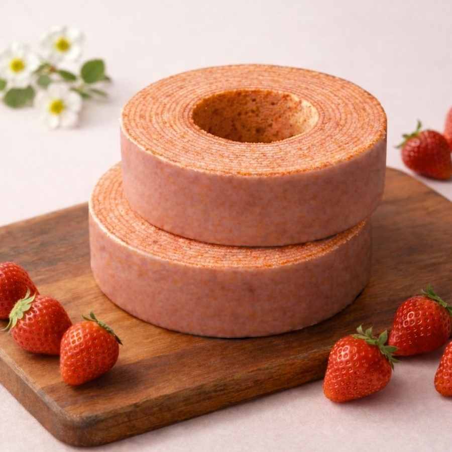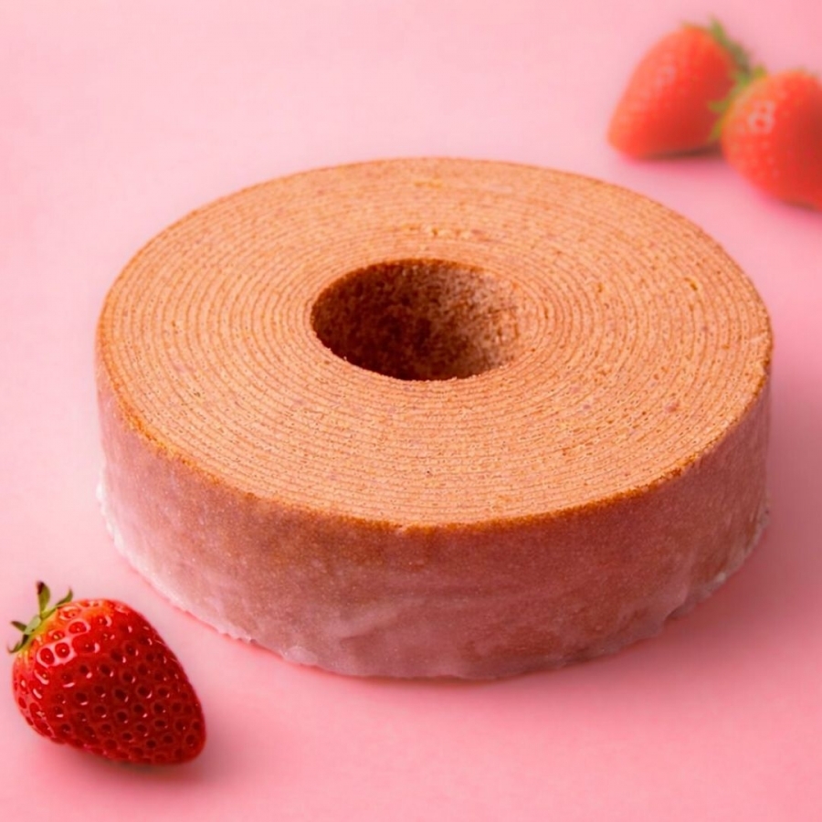 そんな自慢のバウムに、期間限定でいちご味が登場いたしました。