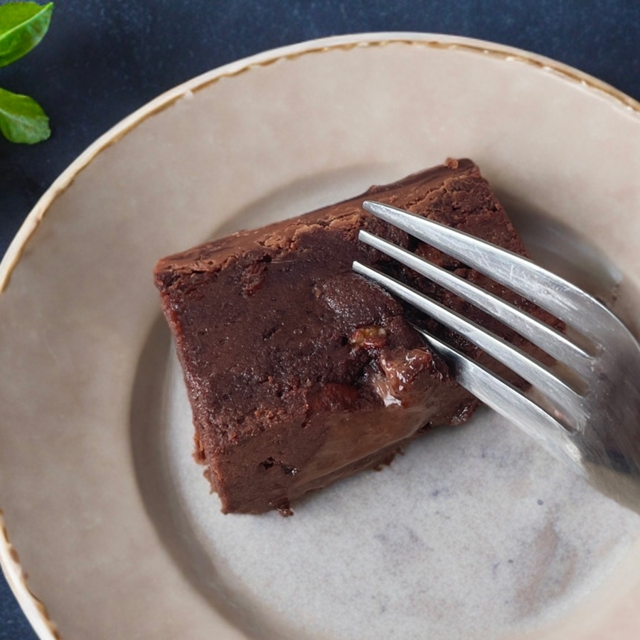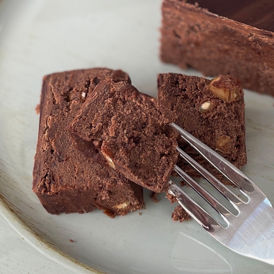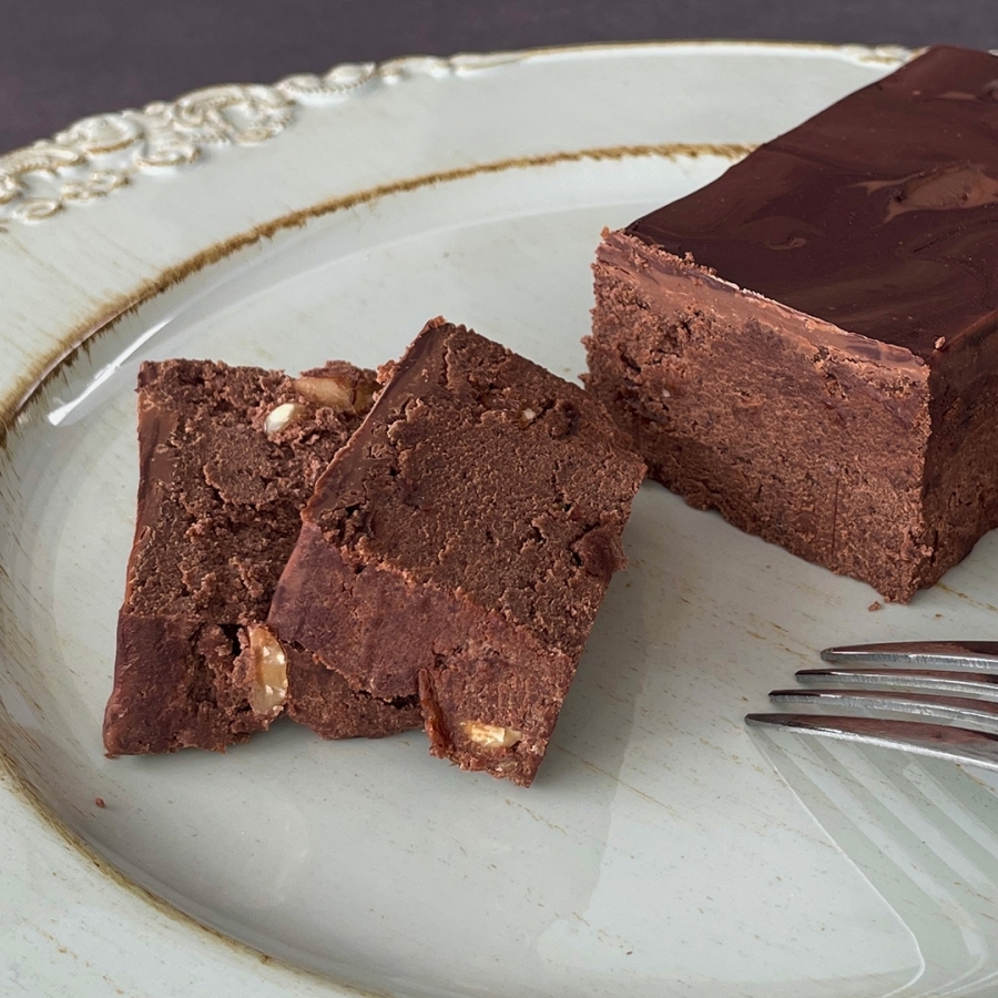 冷やしたまま食べると、ブラウニーのようなずっしりとした食感に。