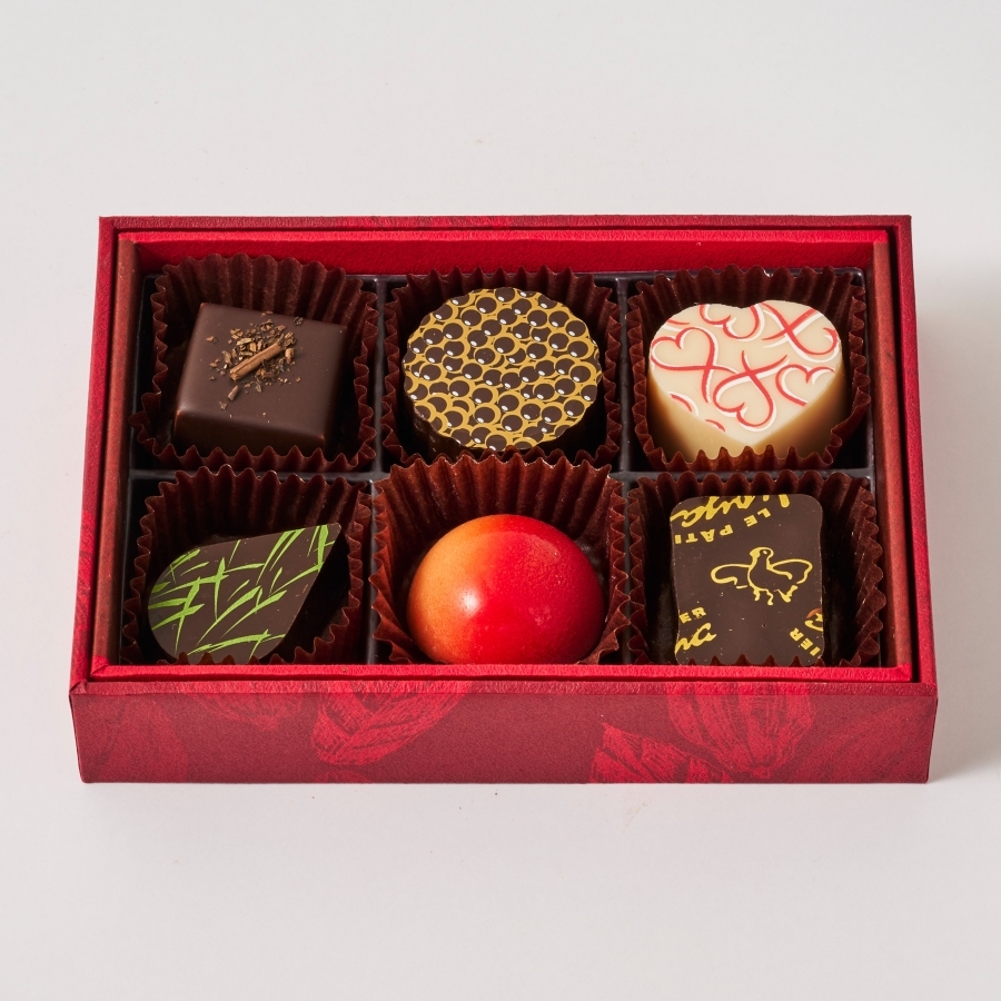 ボンボンショコラ6個入り:抹茶、フランボワーズ、苺ミルク、キャラメルバナナ、ほうじ茶、いちじく