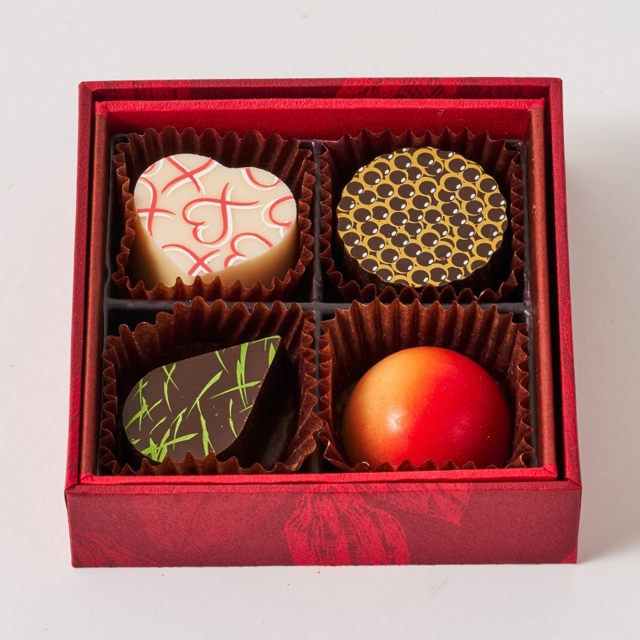 ボンボンショコラ4個入り:抹茶、フランボワーズ、苺ミルク、キャラメルバナナ