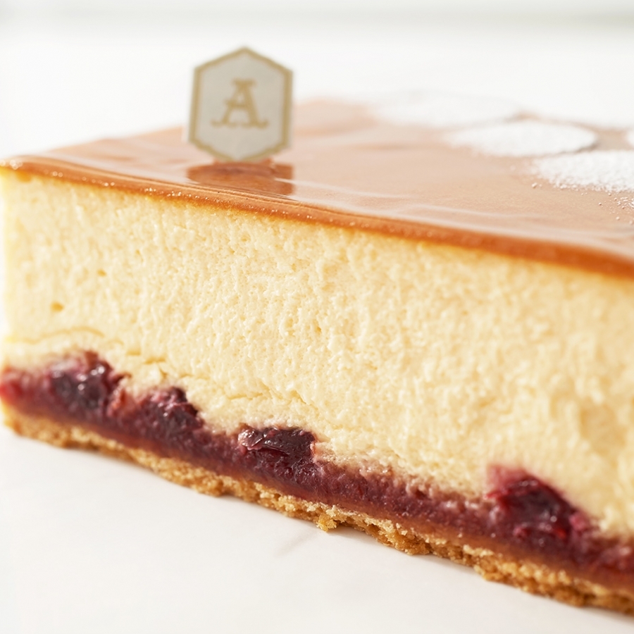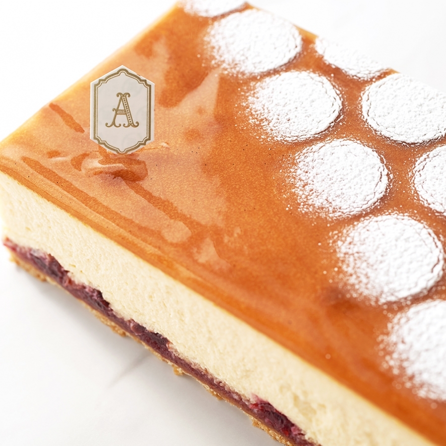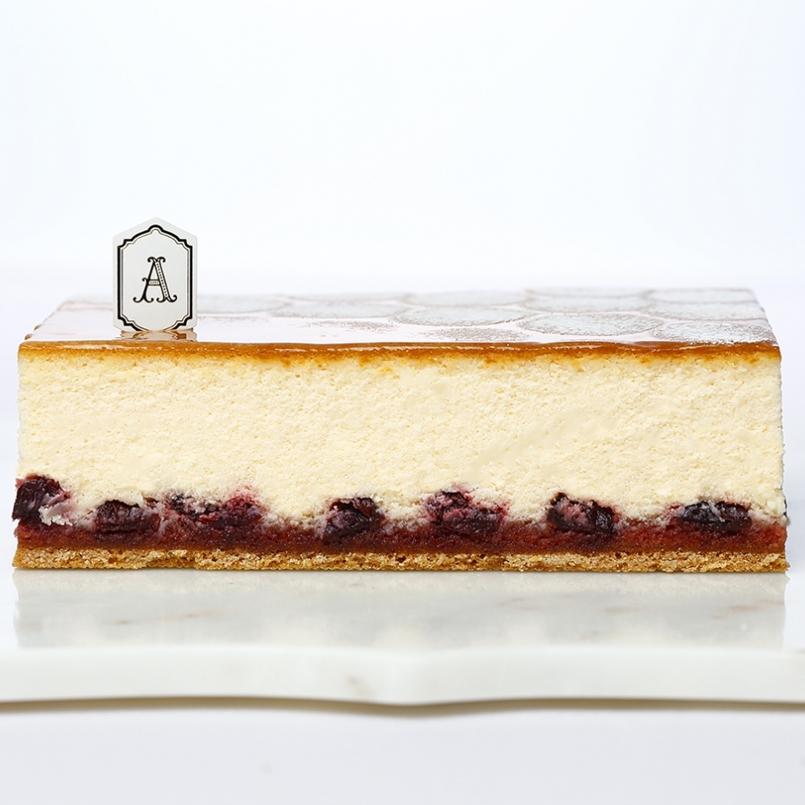 濃厚なクリームチーズを使用し、フルーティーな自家製グリオットチェリーコンポートを合わせて、低温でじっくり焼き上げたアグネス自慢のチーズケーキです。チーズのコクとチェリーの甘味、酸味が味わえます。