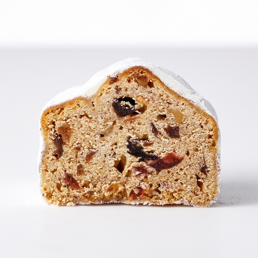スパイス香るクリスマス伝統菓子シュトーレン。じっくり発酵させた生地に阿波和三盆糖糖蜜を練り込み、たっぷりのドライフルーツとともに焼き上げた、フルーティーな風味が特徴です。食べ頃はクリスマス〜お正月です。