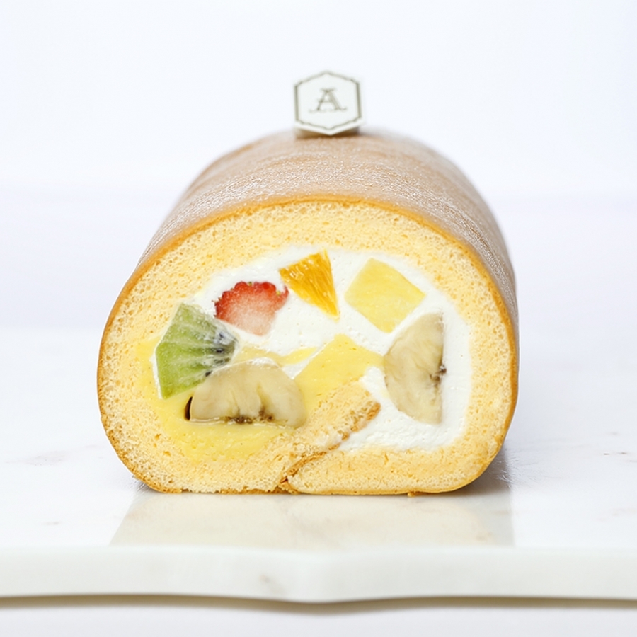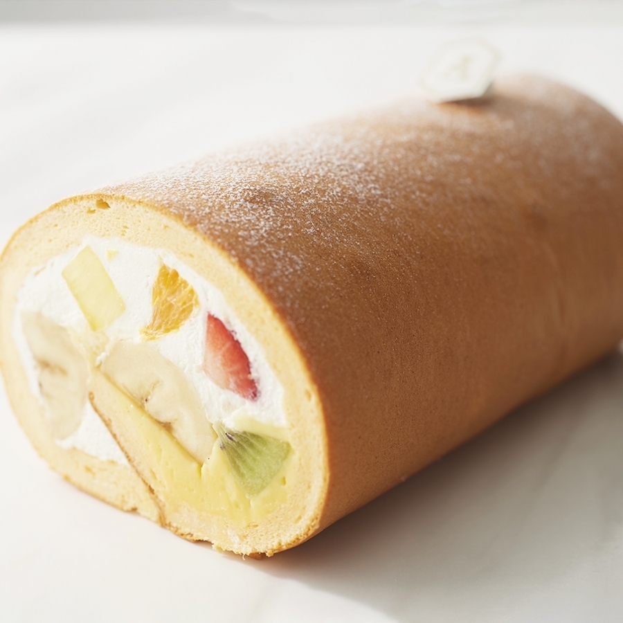 しっとりと焼き上げた生地にコクのある生クリームとカスタードクリーム、季節のフルーツを彩りよく巻き上げた人気のロールケーキです。