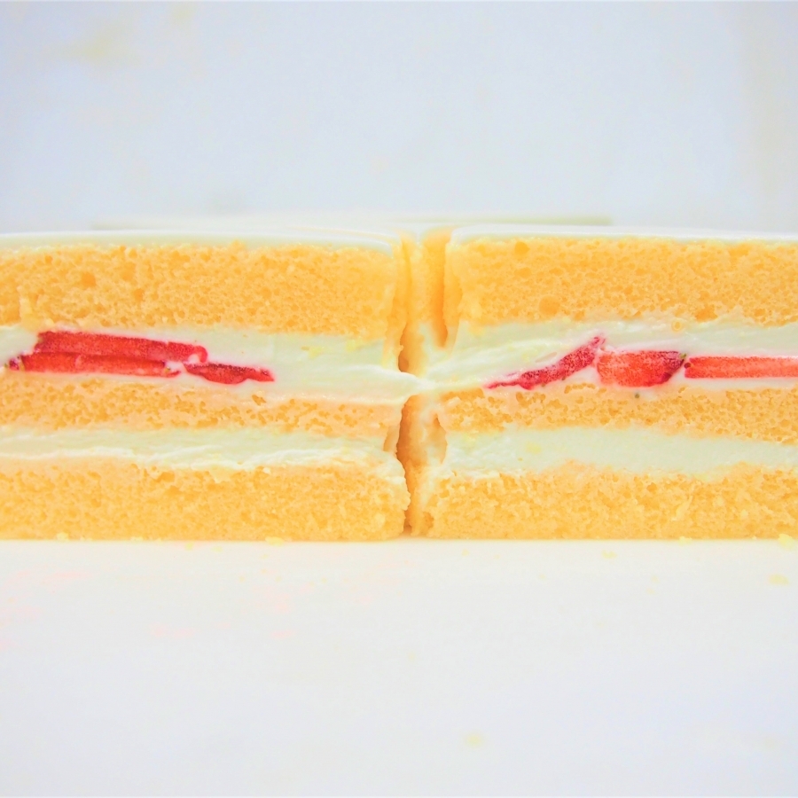 ふわふわのスポンジに、苺と生クリームをサンドしています。