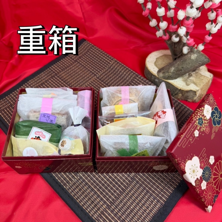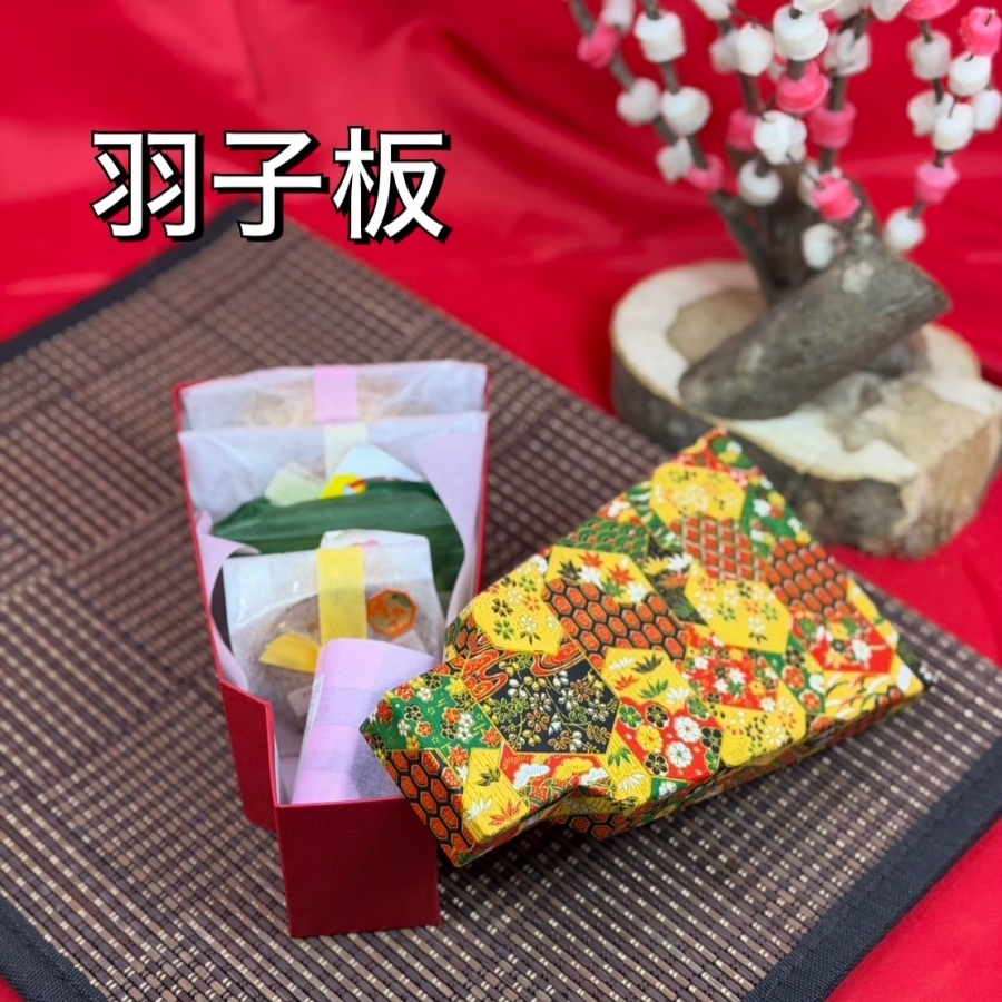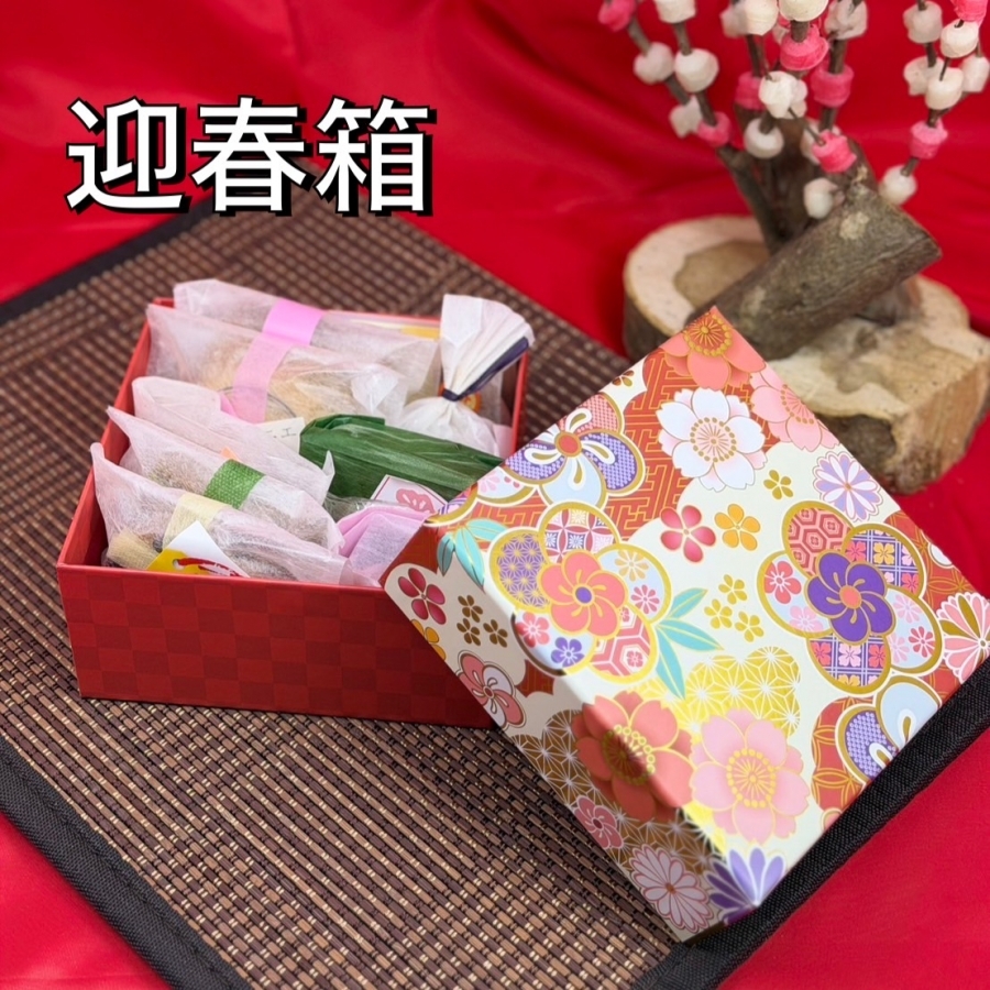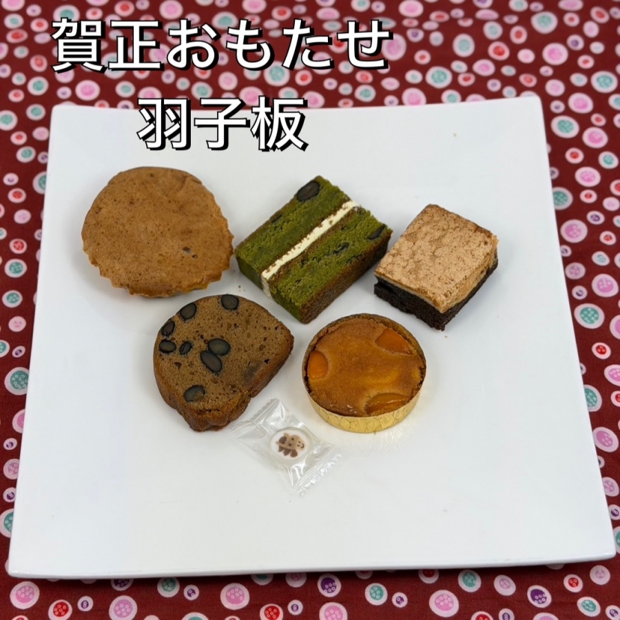 写真のパッケージでの発送でございます。(賀正おもたせの和柄はおまかせとさせていただきます)。
