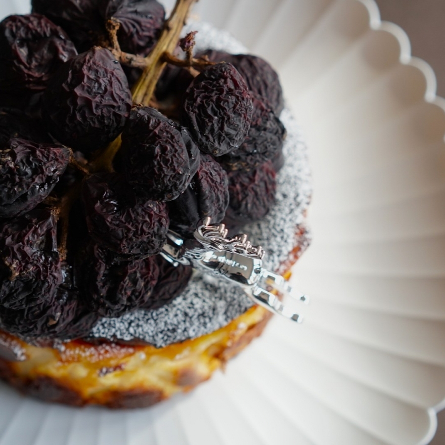 熟成タイプのブリヤサヴァランを焼きこんだバスク風チーズケーキに乗せています。