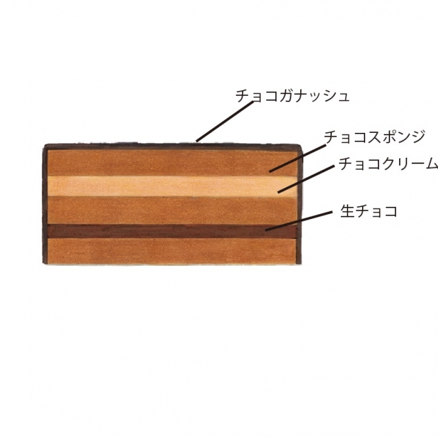 チョコスポンジにチョコクリームと生チョコをサンドし