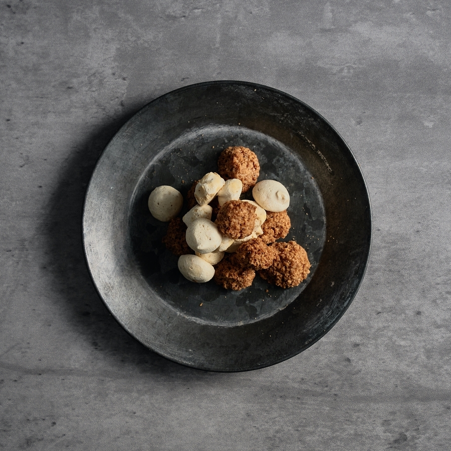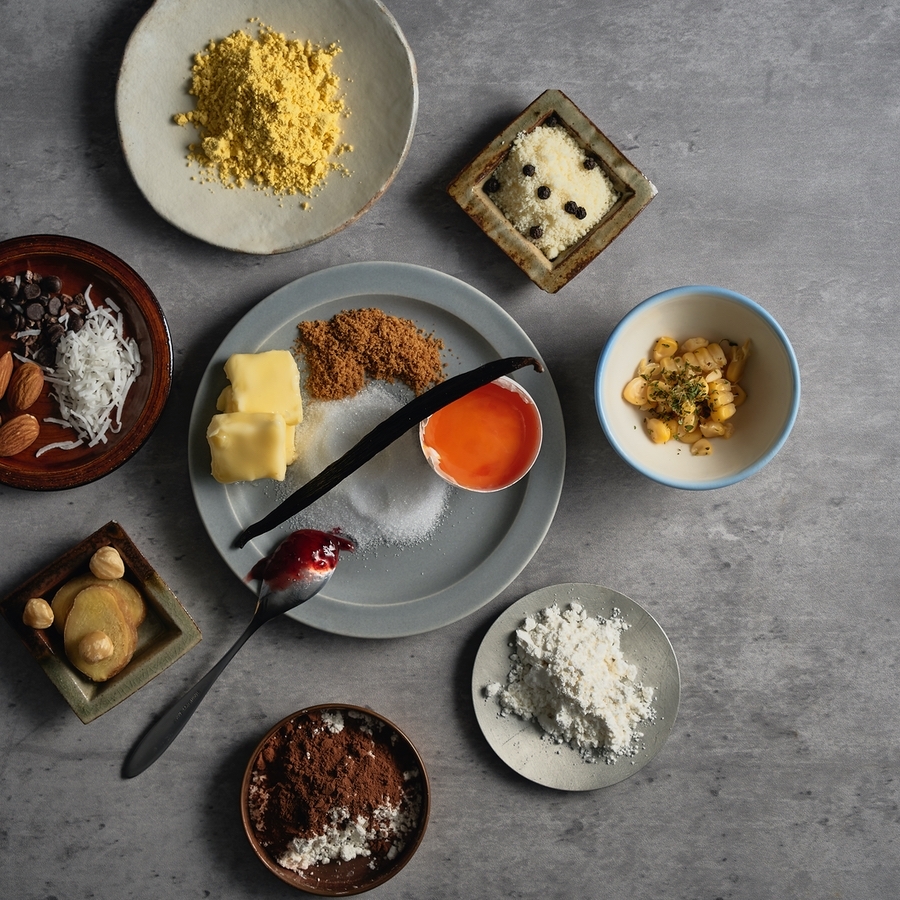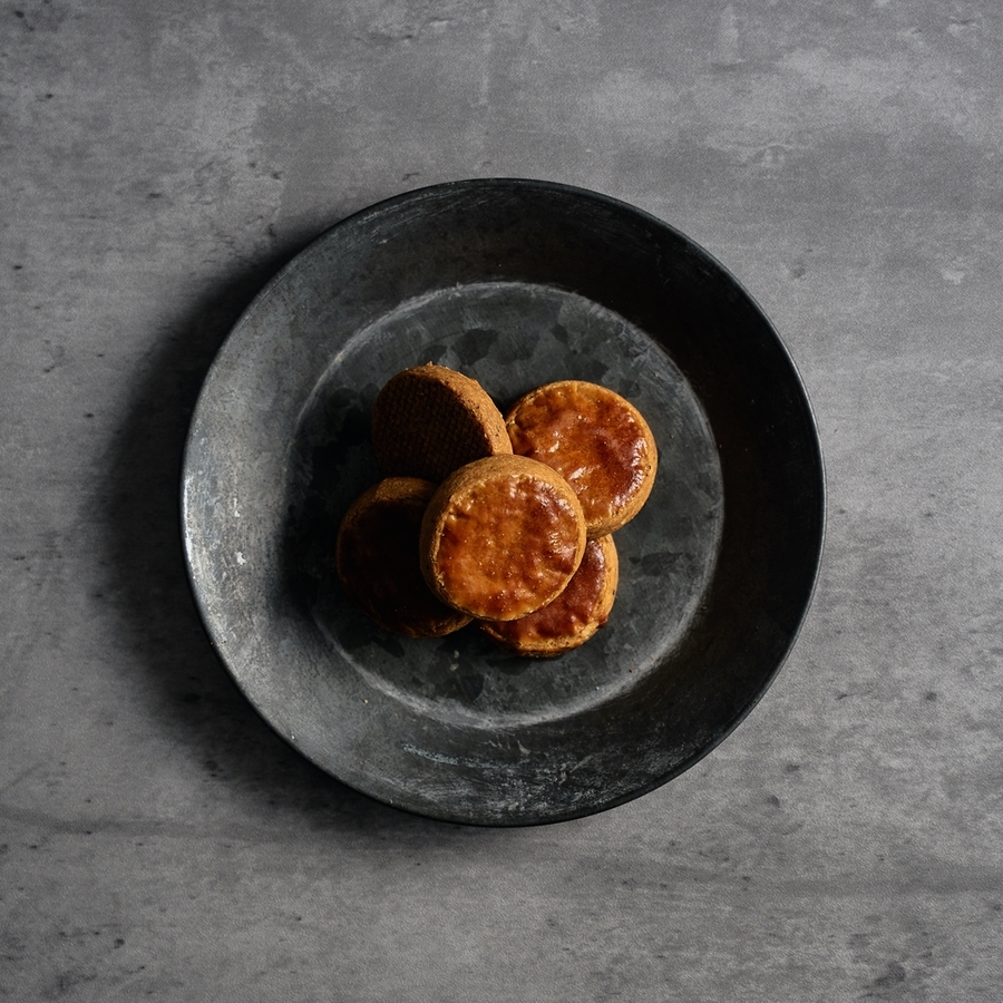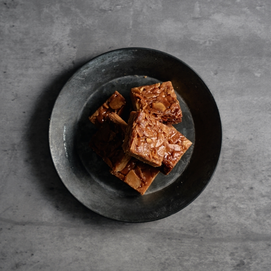 少し厚めに焼いたサブレにアーモンドヌガーを重ね、ほんのりバニラと塩で香ばしさを引き立てる