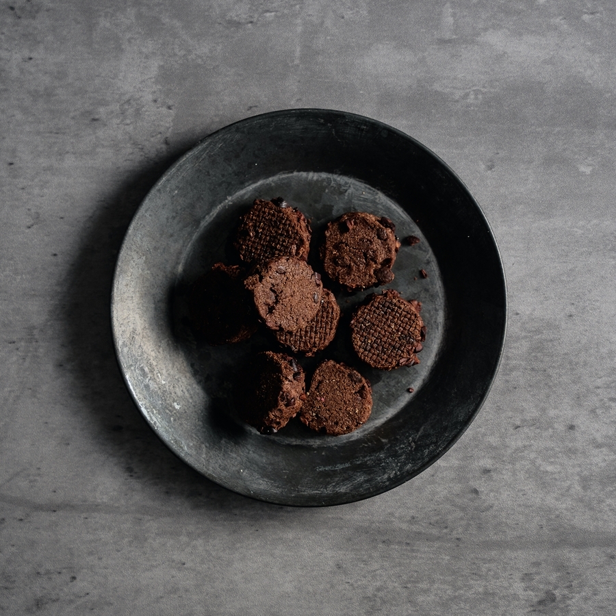 中にはショコラのチップ、外はカカオニブをつけ、オーガニックココナッツシュガーと米粉で軽さを出し、ほんのり塩をきかせたバランスは絶妙