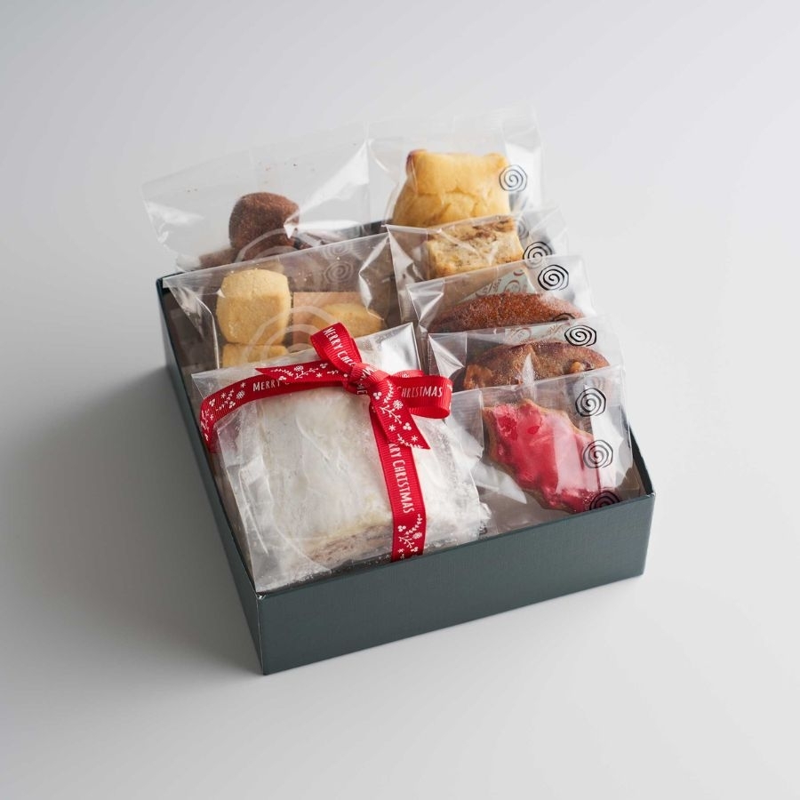 | 商品内容 | ・シュトーレン(ハーフ) ×1 ・クリスマスサブレ[フランボワーズ](ひいらぎ) ×1 ・クリスマスサブレ[紅茶](スノーマン) ×1 ・ミニスコーン[いちじくとクルミ] ×1 ・ミニスコーン[りんご] ×1 ・ヴィジタンディーヌ [マロン] ×1 ・ヴィジタンディーヌ [フランボワーズ] ×1 ・キューブクッキー[プレーン] ×1 ・キューブクッキー[ショコラ] ×1 計9点 |