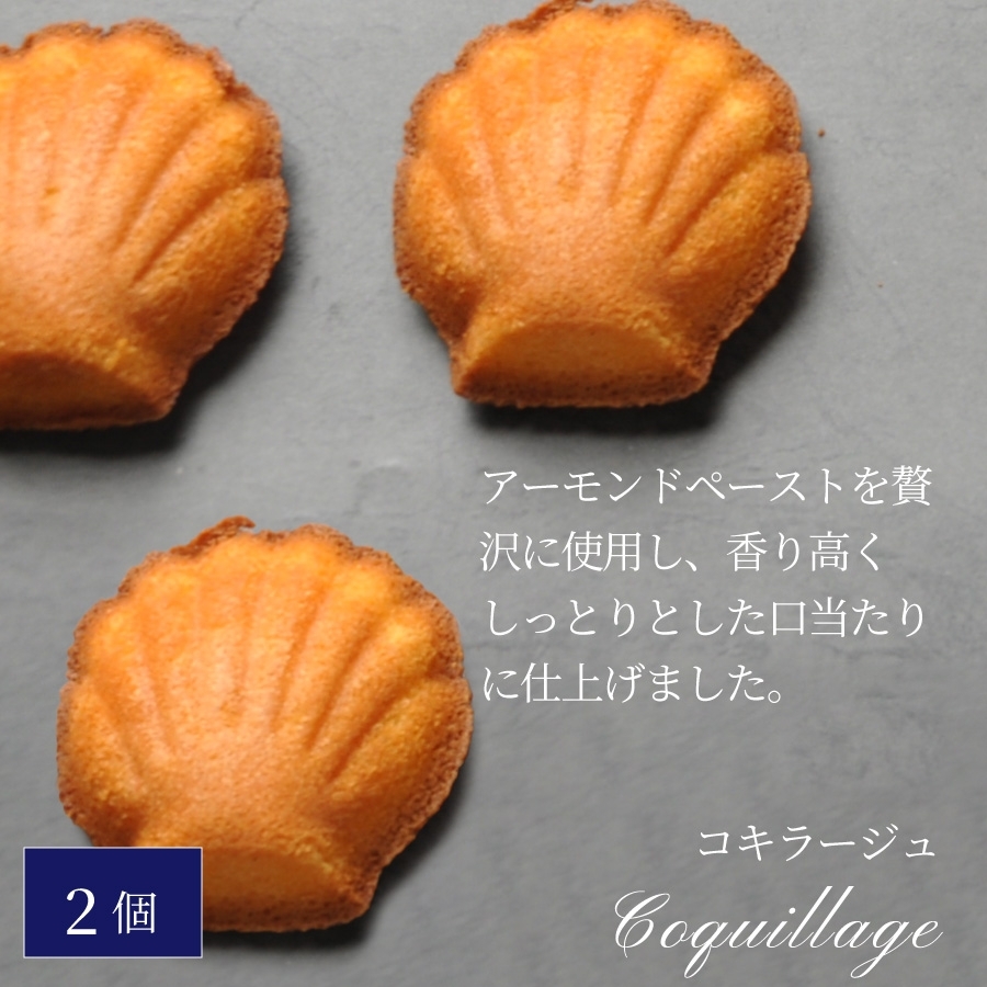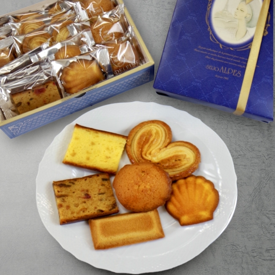 マドレーヌ×3入 フィナンシェ×3入 フルーツケーキ×2入 フルーツアナナ×1入 パルミエ×3入 コキラージュ×2入 合計14個の詰め合わせ。