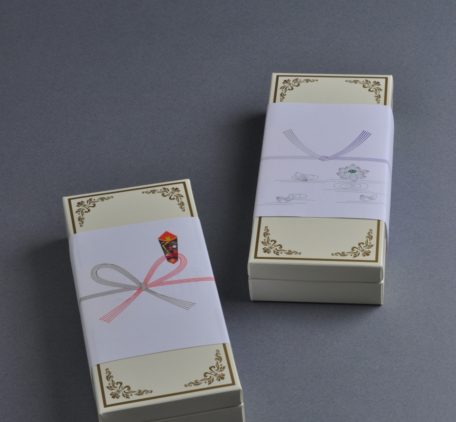 熨斗をかける場合は、直にお箱に熨斗紙をおかけします。
