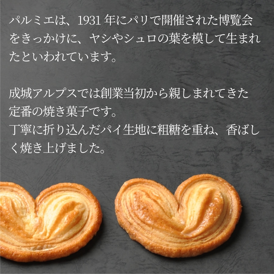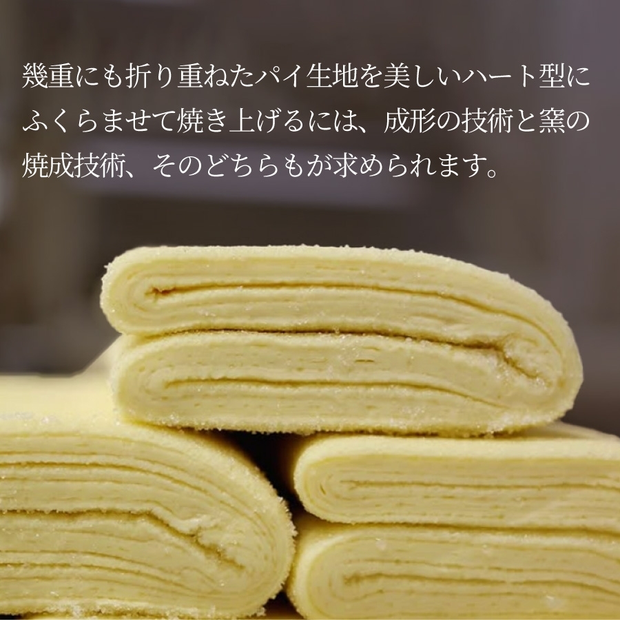 創業当初からの人気商品で、繊細なパイの触感と、袋を開けた瞬間に香るバターの香りは、ご年配の方からお子様までも虜にする焼き菓子です。