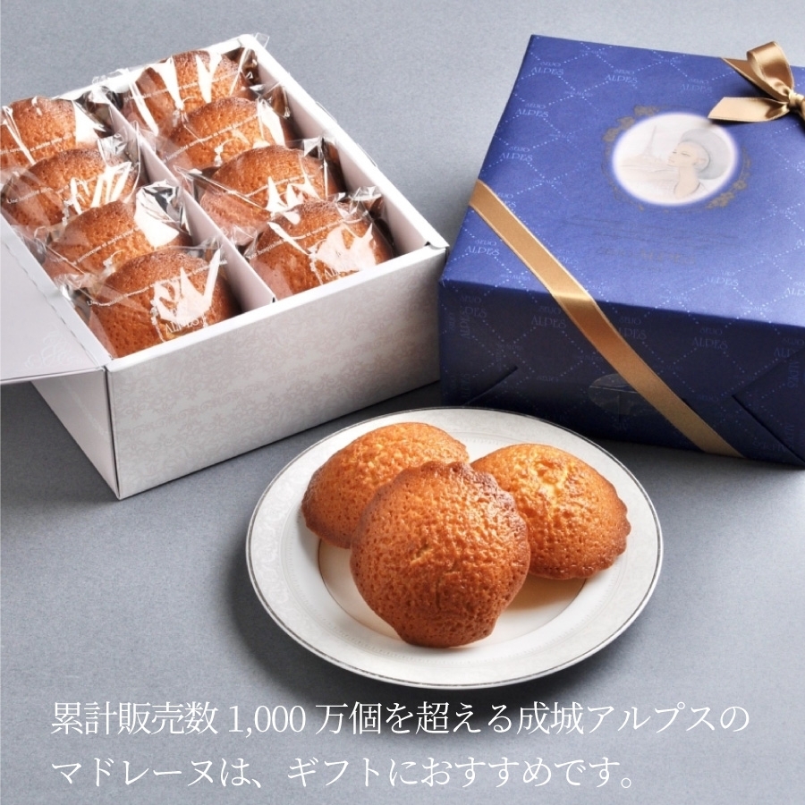 新鮮な卵とバターをふんだんに使い、本場フランスの伝統的な方法でひとつひとつ丁寧に焼き上げました。一つがとても大きくて、食べ応えのあるマドレーヌ。アルプスといえば、マドレーヌ。と言われるほど、一番人気の焼菓子です。