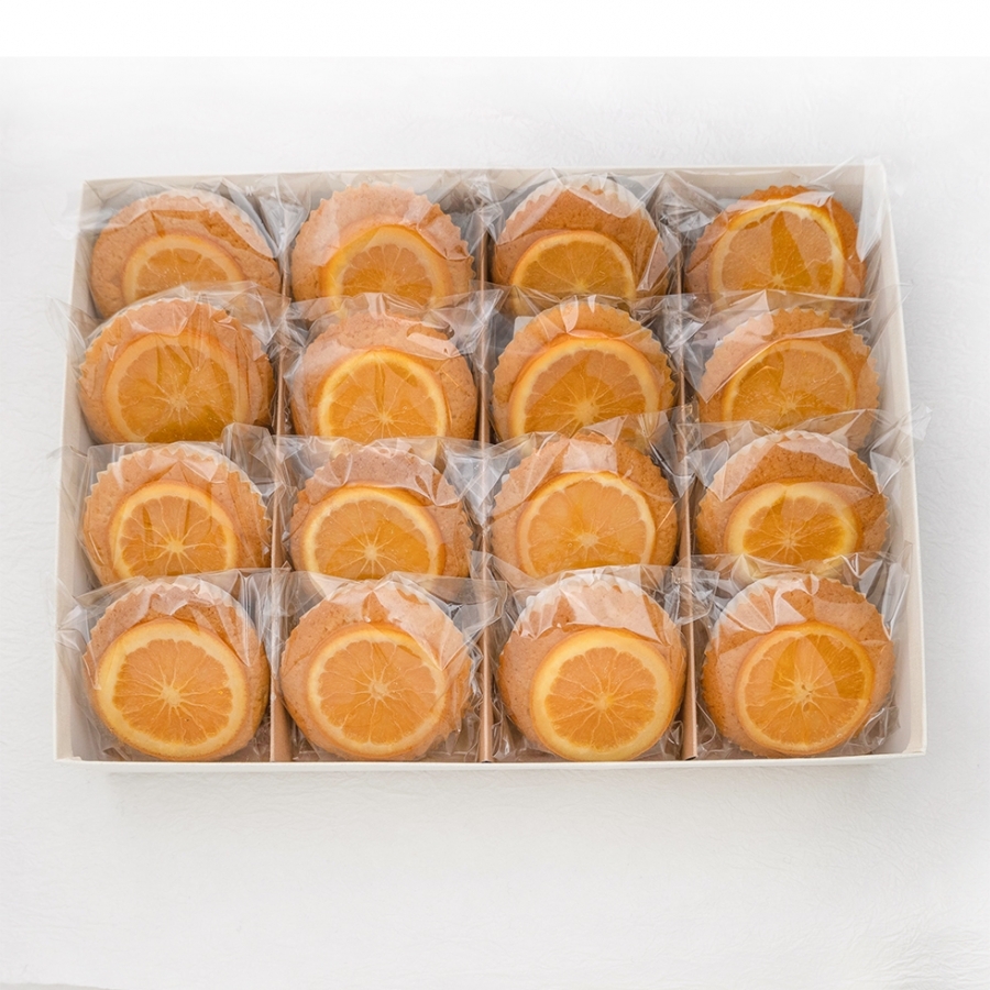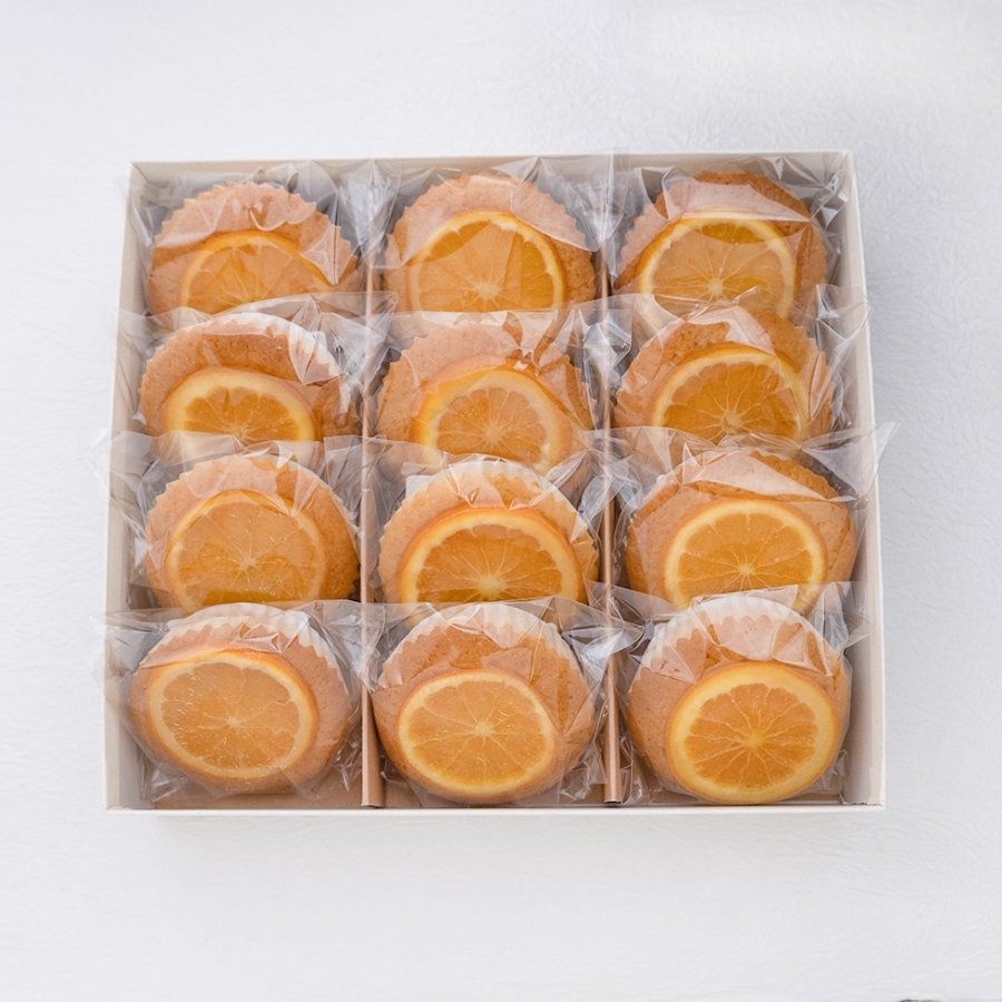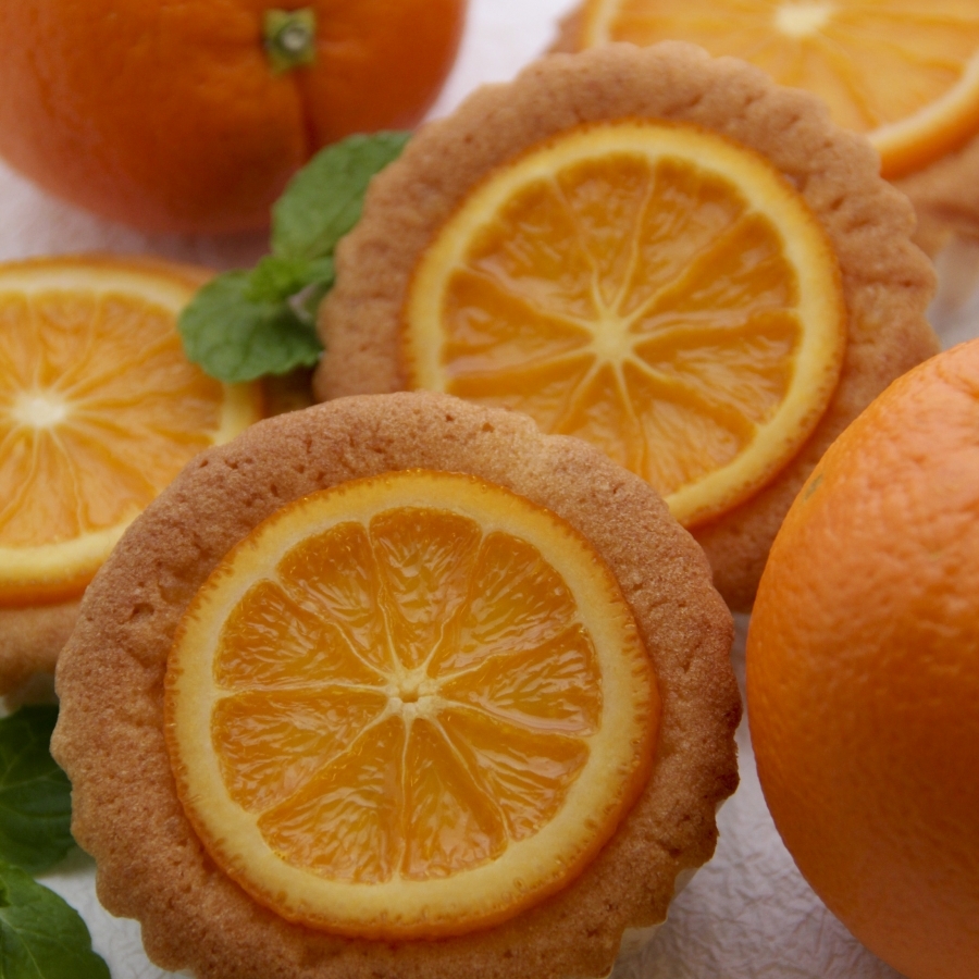 刻んだオレンジピールを練り込み、スライスオレンジをのせて華やかに仕上げました。