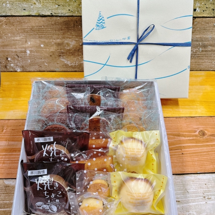小・中の箱サイズと詰め合わせの中身が箱の大きさによって様々でご用意しております。