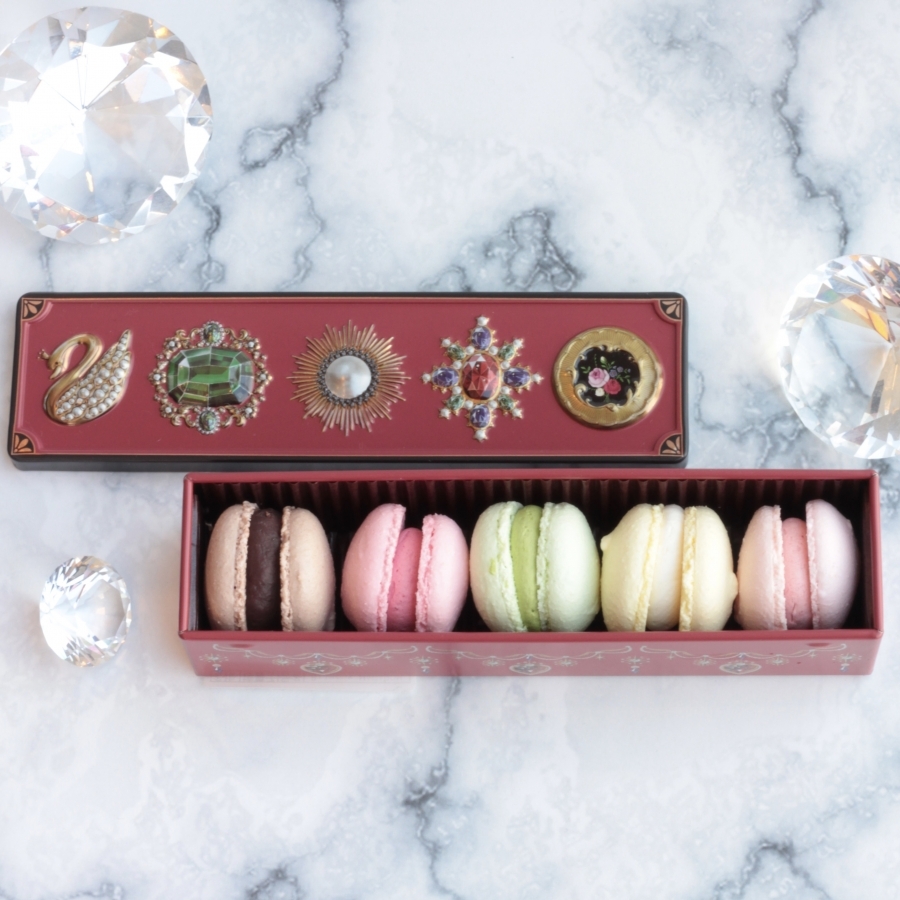 ステラリュヌ大人気のマカロンをとってもおしゃれな宝石の缶に詰め合わせました。