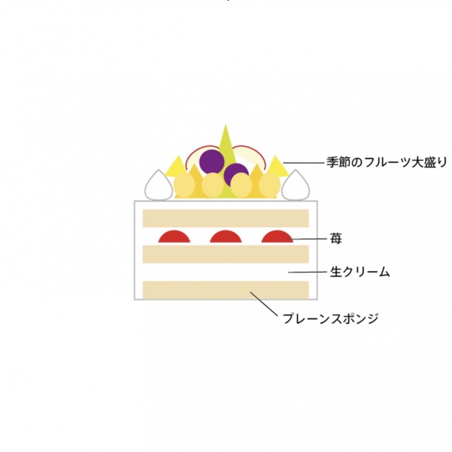 ※ケーキの飾り方やフルーツの内容は、写真と多少異なる場合がございます。予めご了承下さい。