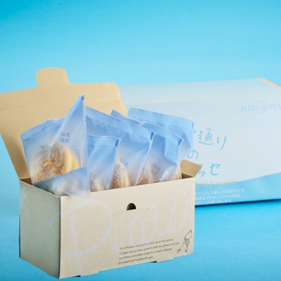 豊かな自然と長大な海岸線を持つ千葉の海。九十九里のミネラルを豊富に含んだ天然の粗塩をバターに練り込み、ふんわりとしたブッセ生地にサンドしました。