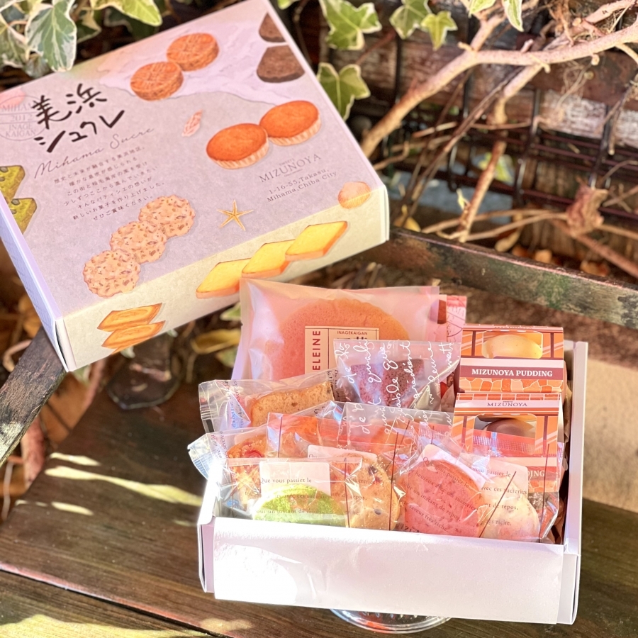 プリン・クッキー、パウンドケーキ、焼ドーナツ、マドレーヌ等々、人気商品を取り揃え詰め合わせたギフトです。