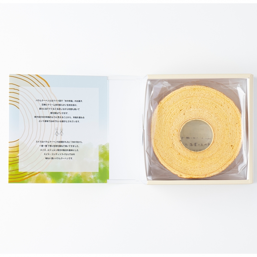 創業まもない1969年から50年以上、熊本の有精卵など原材料にもこだわり、一層一層生地を重ねて焼き上げるクラッシックで味わい深いバウムクーヘンです。さらなる美味しさを求めて、焼き方にも工夫を重ね、しっとりとした口溶けの良さもプラスされ、ご好評いただいております。