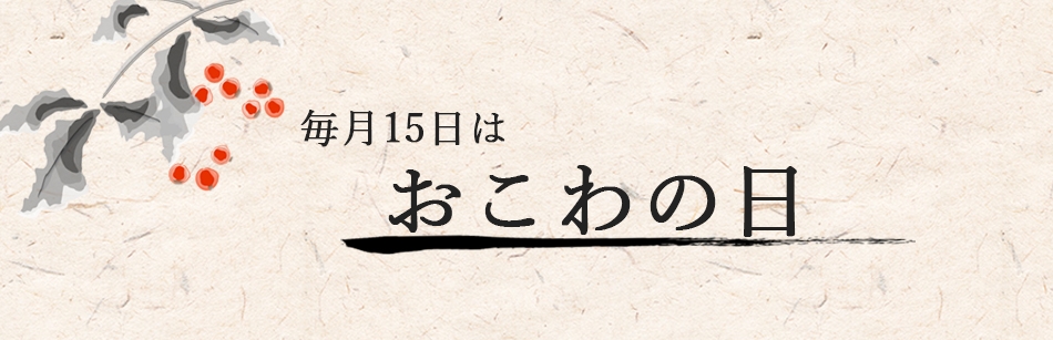 毎月15日は「おこわの日」として、季節の素材やいわれのあるおこわをご用意しています。たこまんのこだわりのおこわをお楽しみください。