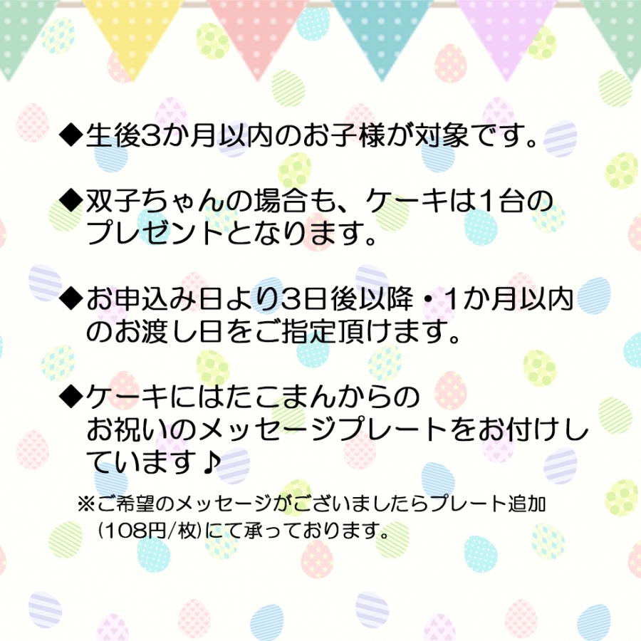 ◆双子ちゃんの場合も、ケーキは1台のプレゼントとなります。