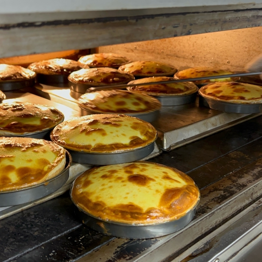 濃厚ながら甘すぎない味わいに。中はとろ〜り、表面こんがり、パイ生地サクッとこうばしく。