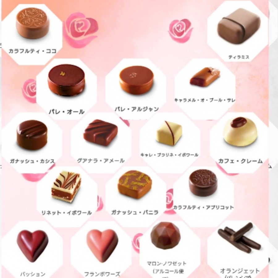 15種類のボンボンショコラを、彩りよく、楽しく詰め合わせました。