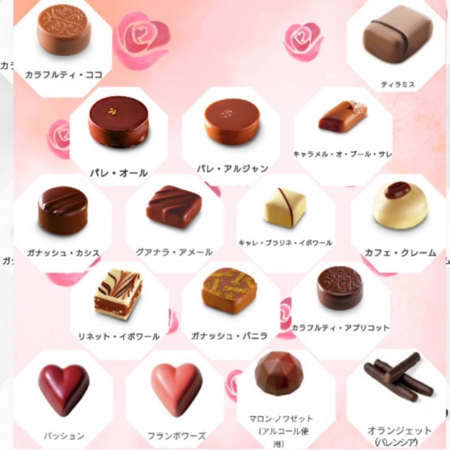 15種類のボンボンショコラを、彩りよく、楽しく詰め合わせました。