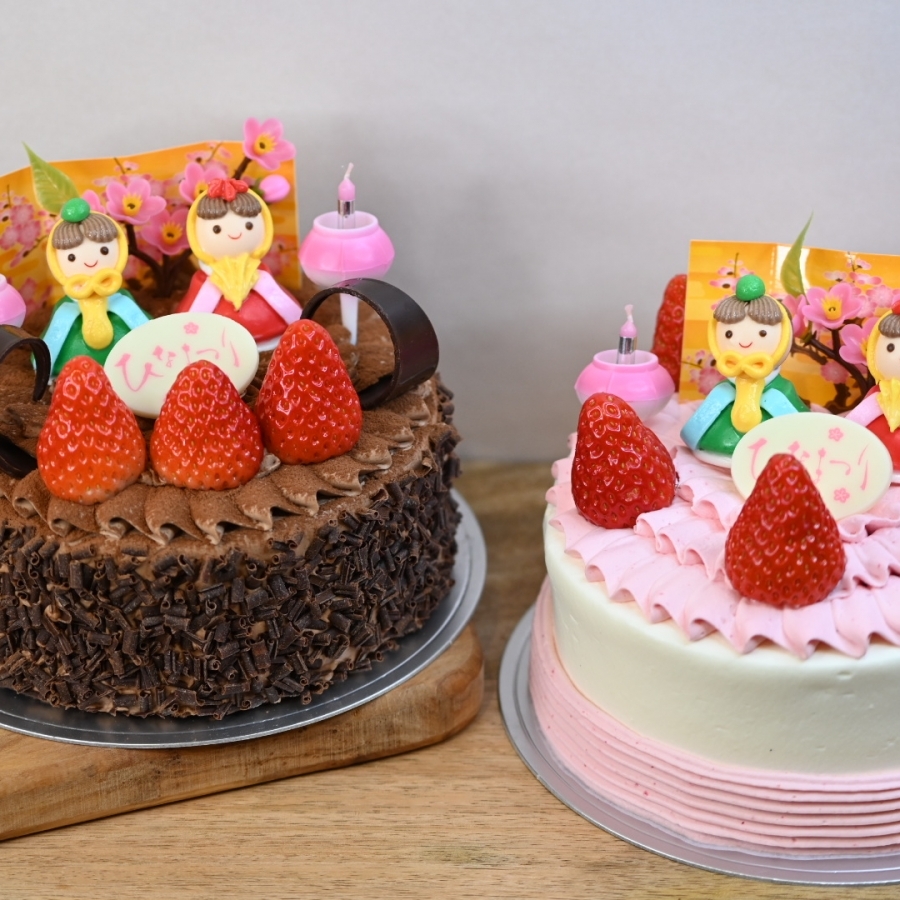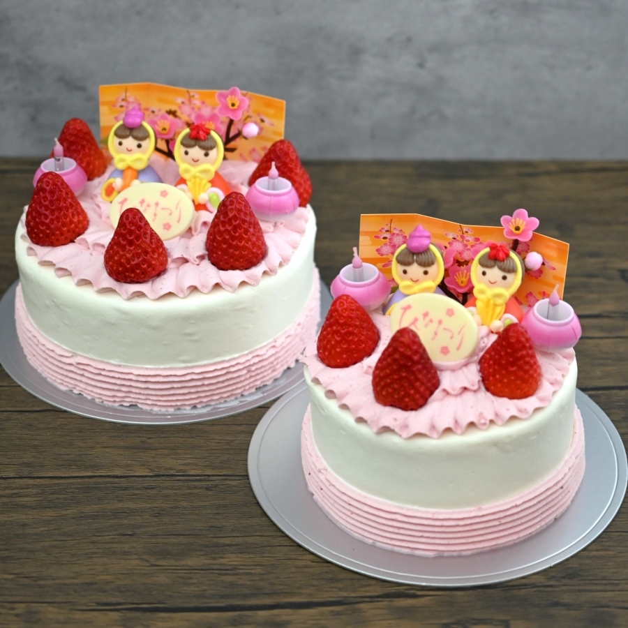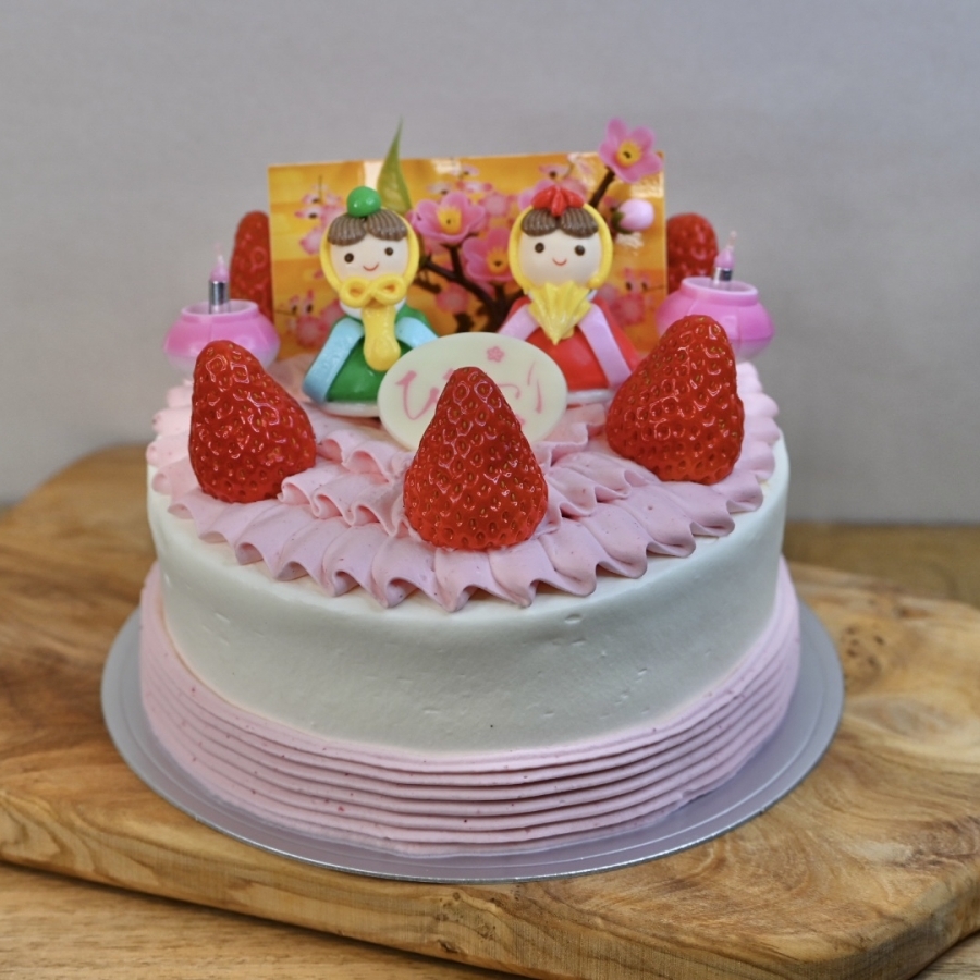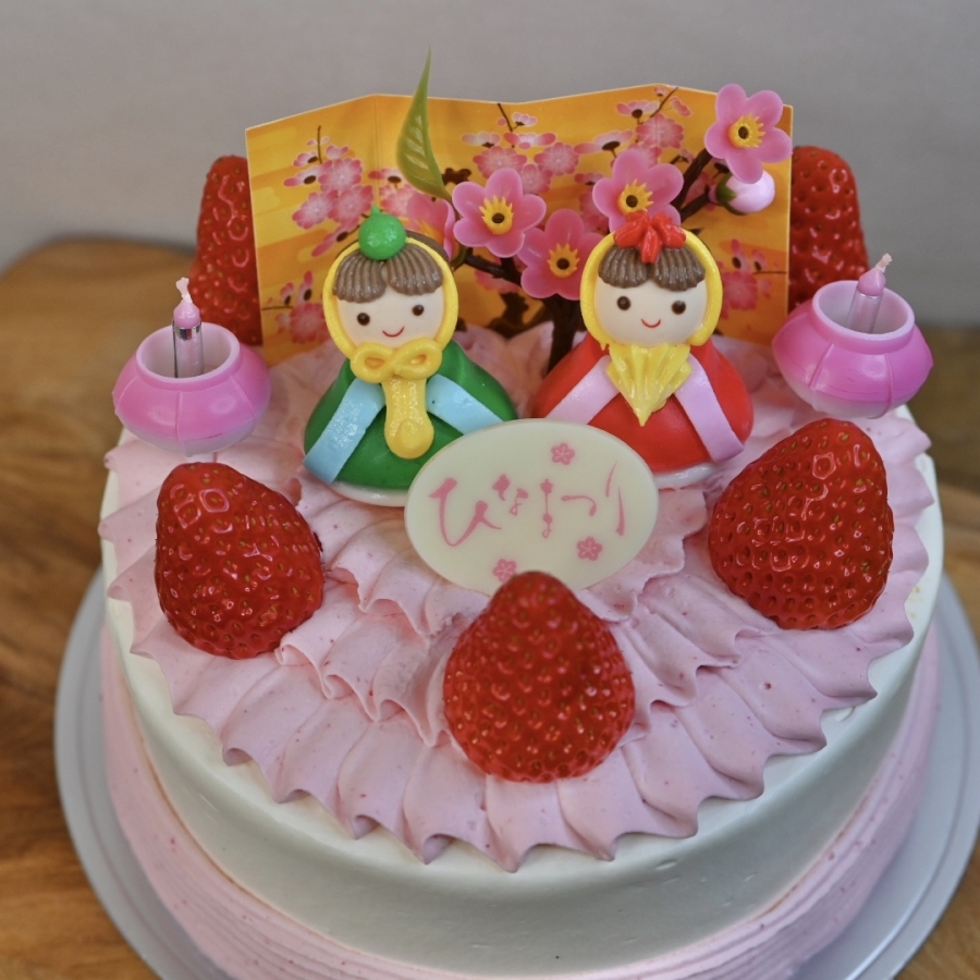 いちごのクリームを使った、ひな祭りのショートケーキです。