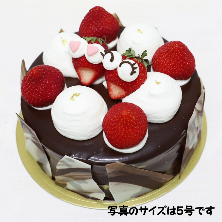 マーブルチョコレートと生クリーム、顔付きのいちごを飾りました。