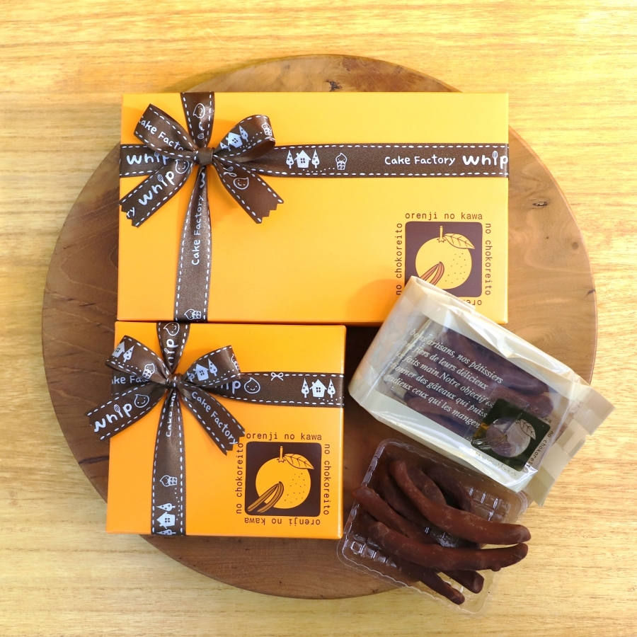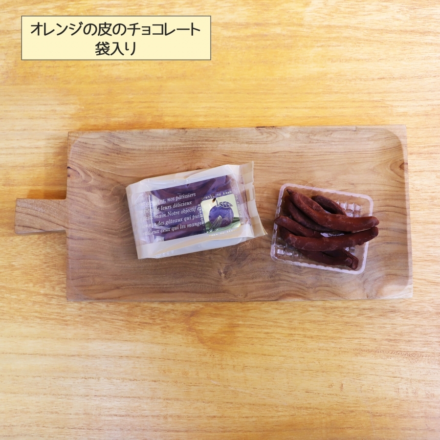 オレンジの皮のシロップ漬けにスイートチョコをコーティングし、ココアをまとわせました。