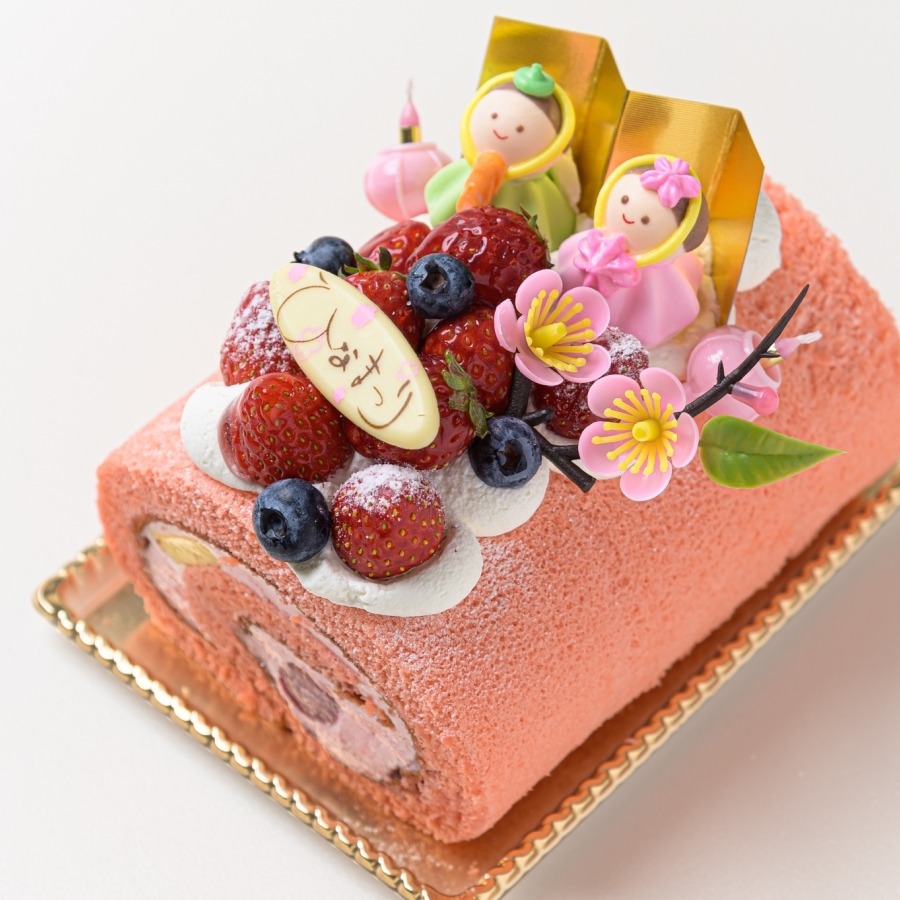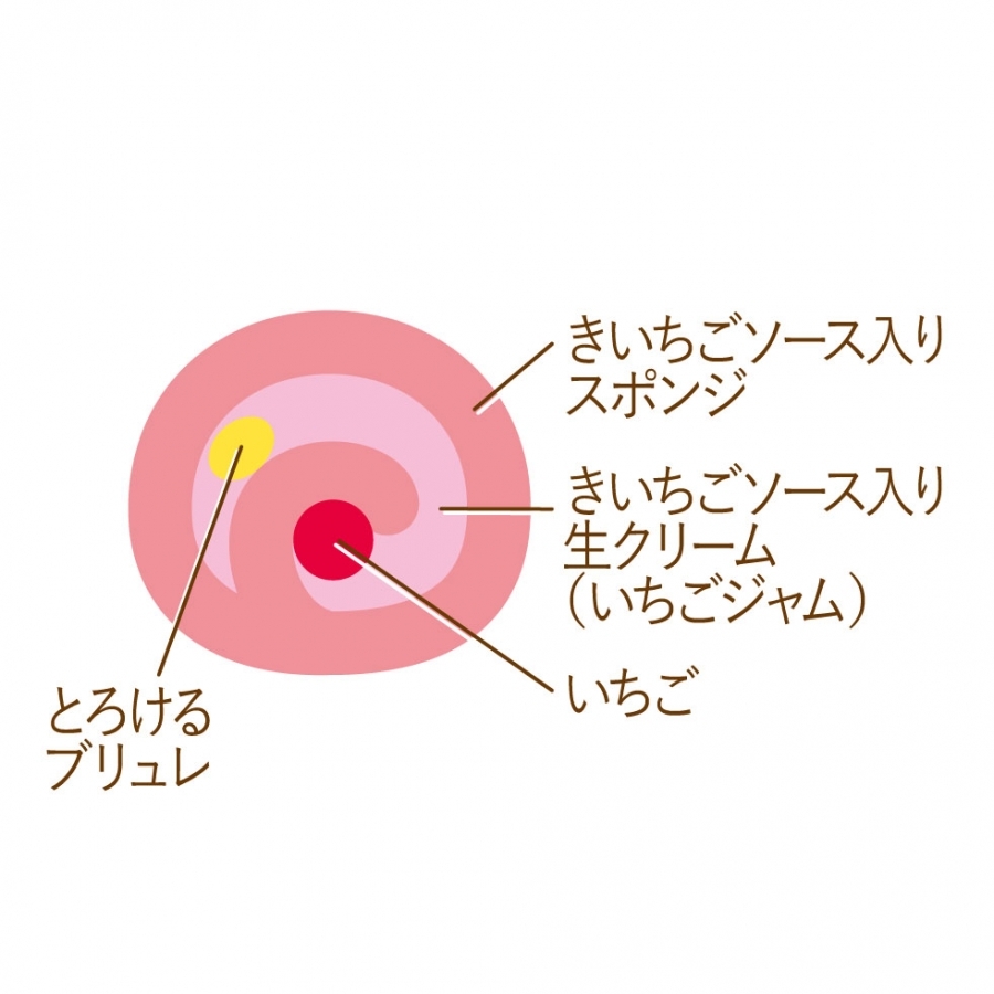 きいちごソースでピンク色に焼き上げたスポンジに、