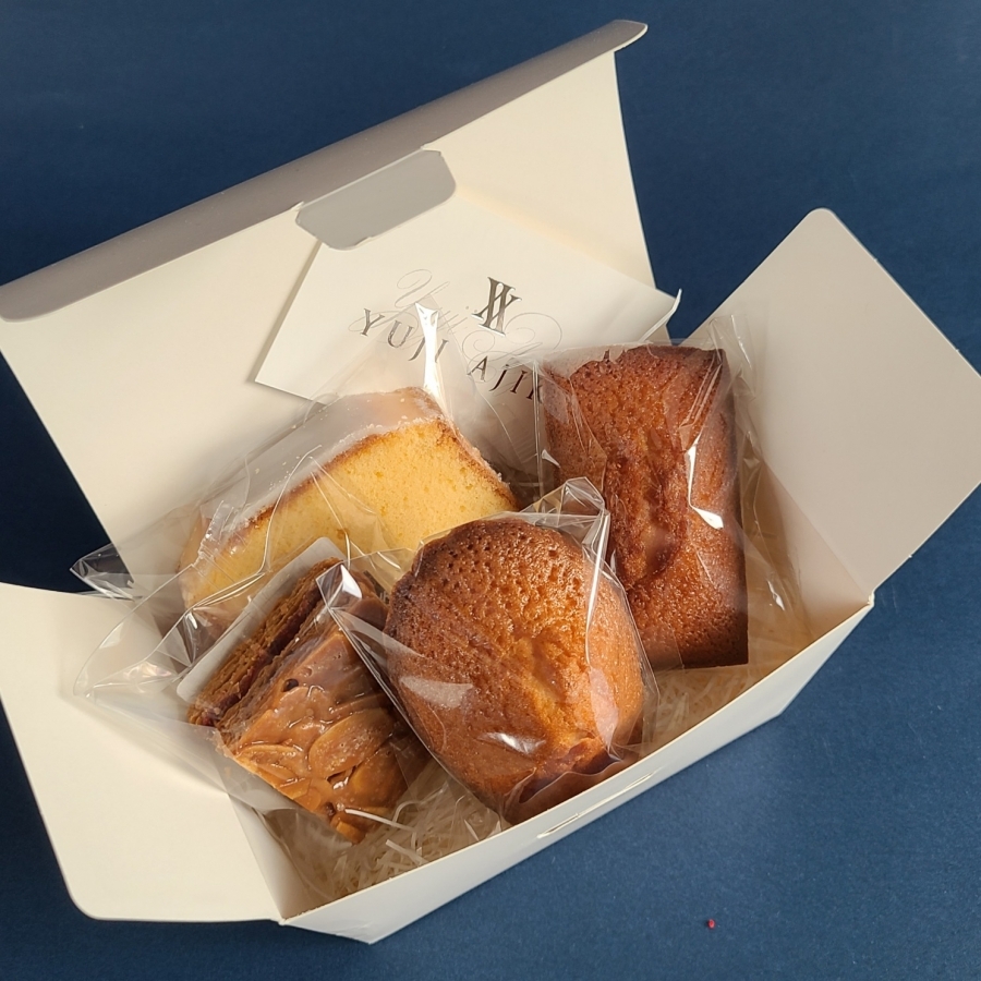 ●こちらはロゴ入りのお箱をゴムバンドで留めています。